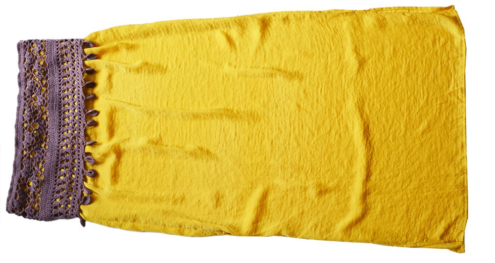 If you would like to make a bandeau top you will either need an elastic band to prevent your top from falling down. Or sew it to the waistband of a ready made skirt with elastic band as shown here.