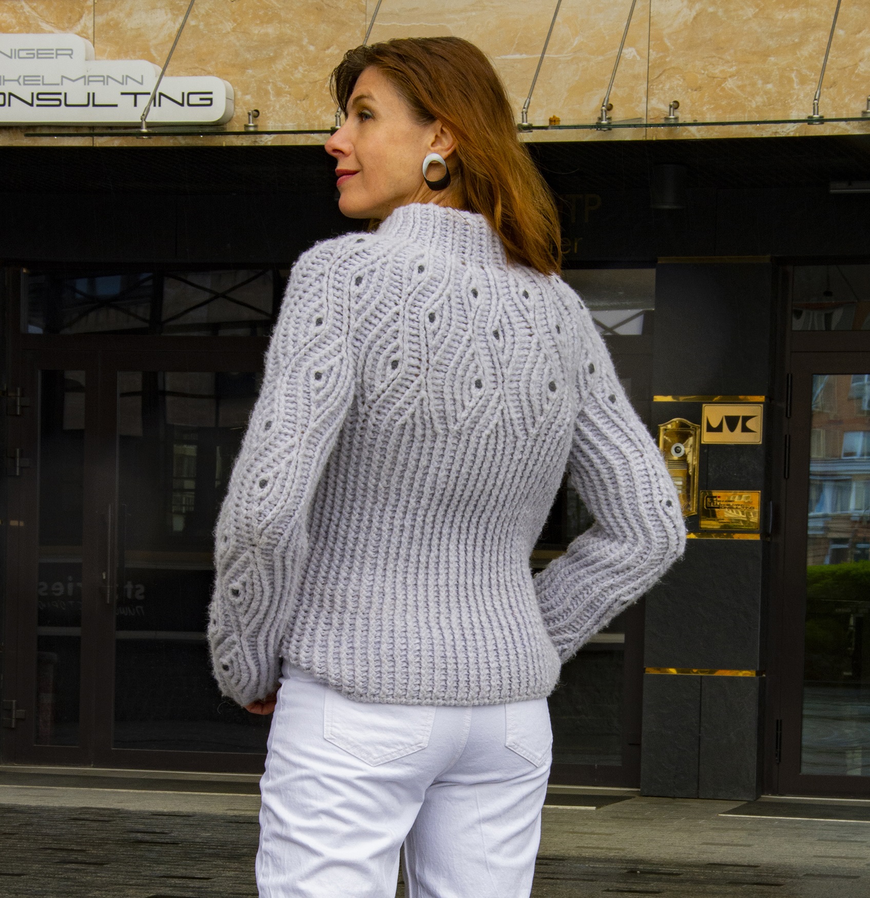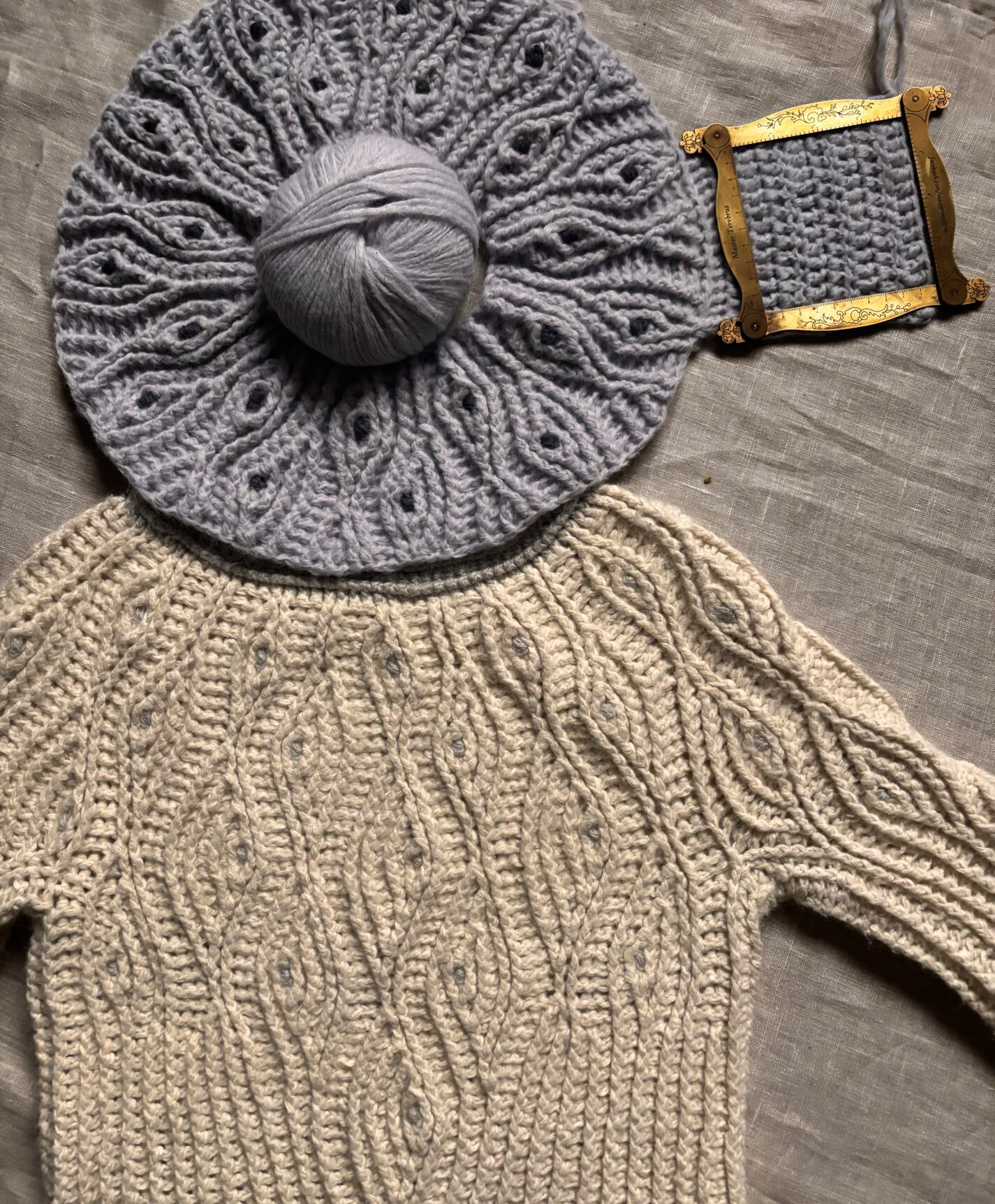 This modern textured crochet sweater pattern is designed for intermediate and advanced crocheters who love rich texture, sculptural details, and seamless top-down crochet projects. Made with thick, warm yarn, this sweater pairs beautifully with both modern and classic wardrobes, becoming an everyday staple through the colder months.