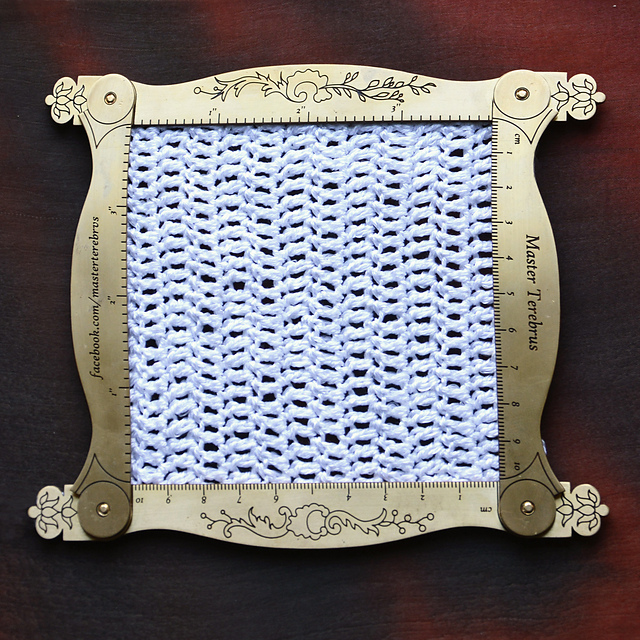 Gauge: 22 dc (US) x 12 rows = 10 x 10 cm = 4’’ x 4’’